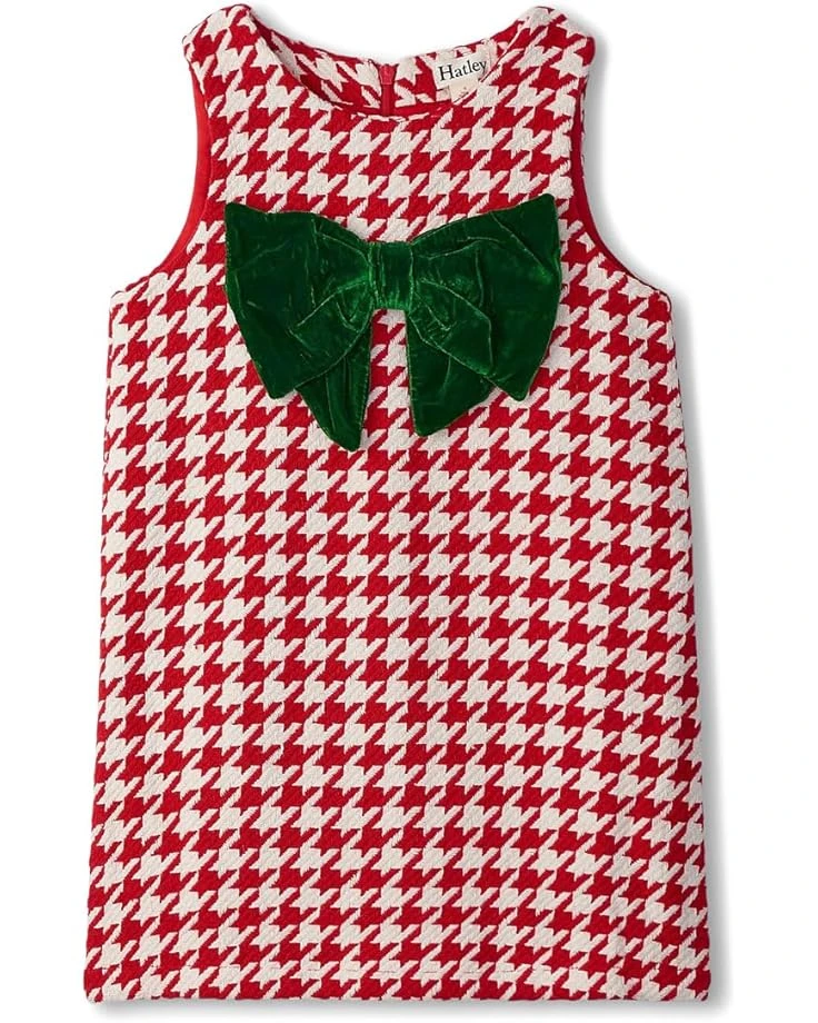 - Effortless elegance meets whimsy! Say goodbye to morning wardrobe dilemmas with this darling Hatley® Kids Big Bow Houndstooth Dress. Designed to charm, this fit-and-flare dress boasts a round neckline with a sleeveless design, adorned with an oversized bow. Fully lined for comfort and secured with a discreet back zipper, this below-the-knee beauty ensures your little one will want to twirl and play in style, day after day.