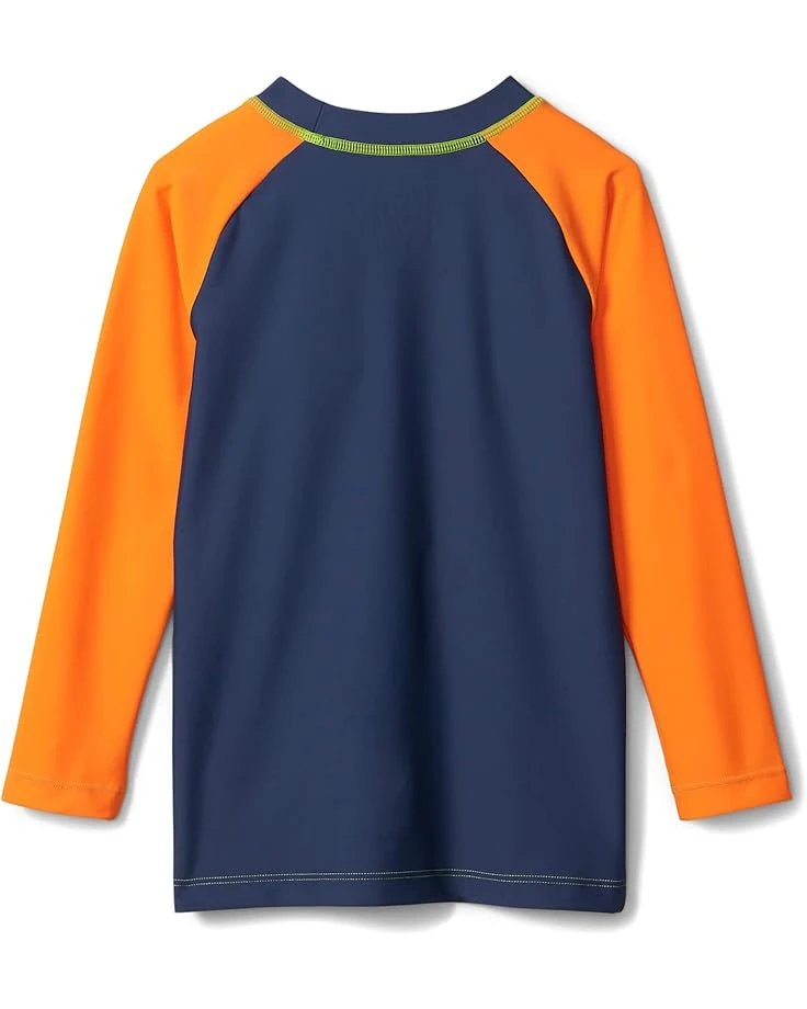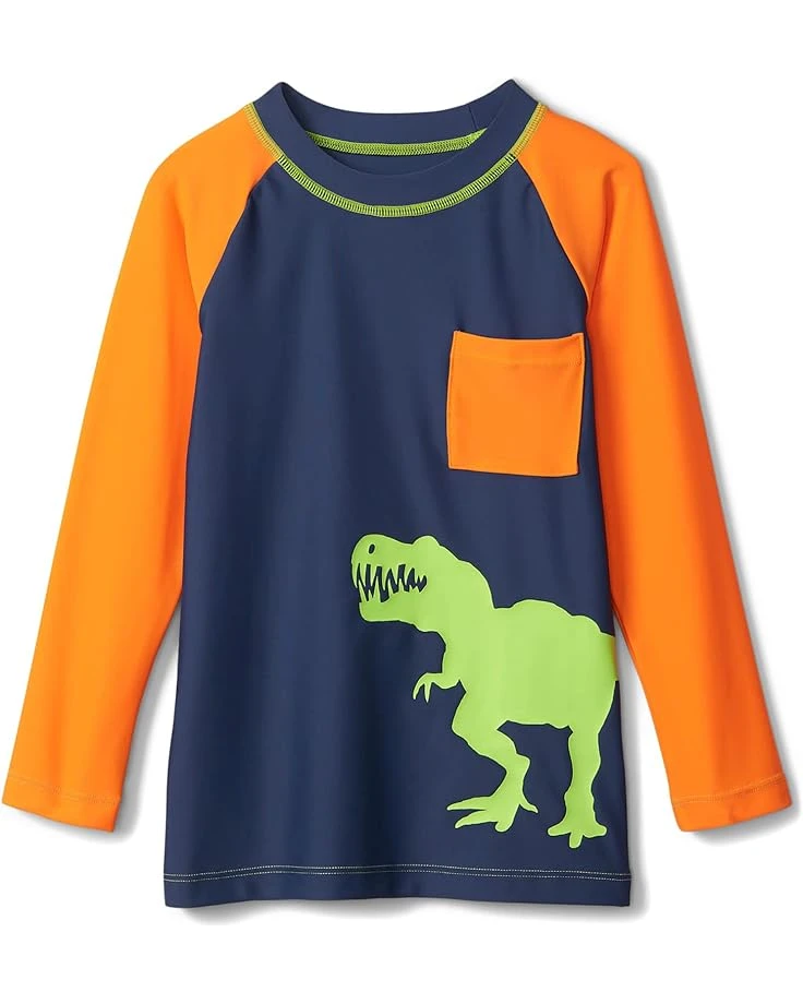 - Style your little buddy in the chic and comfy look of the Hatley® Kids Colour-Block Dino Long Sleeve Pocket Rashguard.