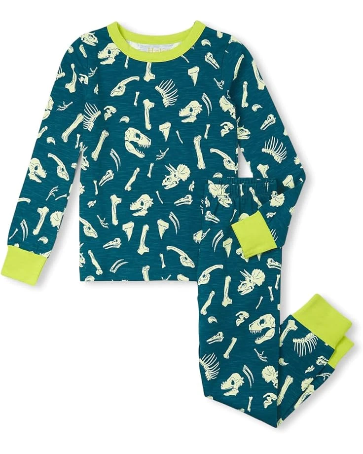 - Thanks to the cozy Hatley® Kids Dino Fossils Stretch Cotton Pajama Set, bedtime will be their new favourite time of day! Made from extra soft organic cotton, your little one will love the print and stretchy elastic waistband that will keep them sleeping comfortably all night long. The T-shirt features a crew neck finished with self binding, long set-in sleeves with separate set-in self cuffs, patch pocket at wearer’s left chest, and an allover dino print. The matching printed pajamas feature an elastic waist and separate set-in self leg opening cuffs.