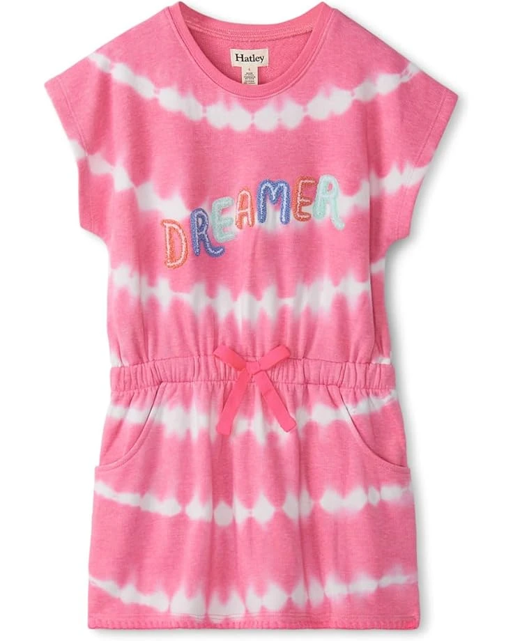 - Let your little one exude a playful vibe as she dresses up in the Hatley® Kids Dreamer Pull On Dress that comes with multicolored “Dreamer” motif and an allover print. The dress features a crew neckline, short dolman sleeves, cinched waist detail with drawstring, and two hand pockets for added functionality. It is designed to offer a regular fit.