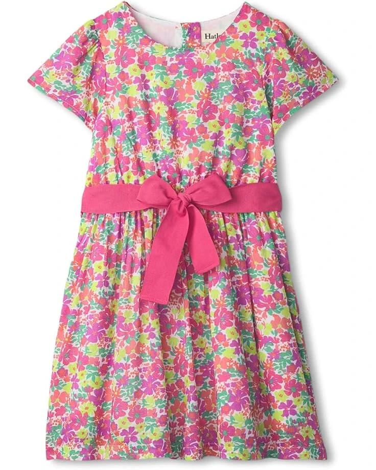 - Let your little one twirl in style wearing the Hatley ® Kids Garden Dress. Featuring crew neckline, back button closure, short sleeves, allover floral print, and self-tie closure on the waistband.