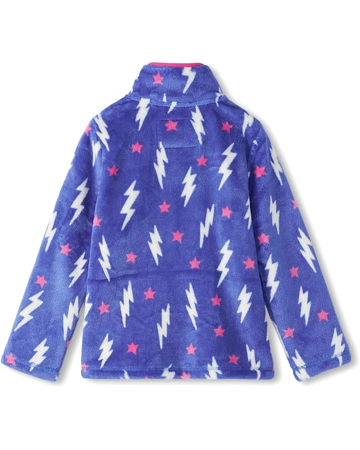 - Electric style meets cozy comfort wearing Hatley® Kids’ Lightning Bolts Fuzzy Fleece Zip-Up! This vibrant, zip-up hoodie is a must-have for little trendsetters. Featuring a bold graphic print, this jacket combines eye-catching flair with everyday practicality. The mock collar and full-length exposed zipper provide extra warmth and ease, while the front kangaroo pocket is perfect for stashing treasures or keeping tiny hands toasty. Long sleeves ensure complete coverage, making this fleece jacket an ideal choice for chilly adventures.