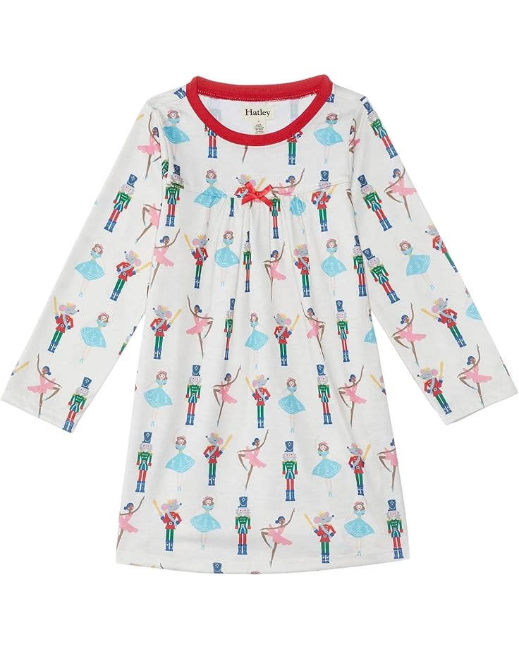 - Stylish and cool, the Hatley® Kids Nutcracker Long Sleeve Nightdress is perfect to keep you comfortable all day and night. The pull-on dress has a crew neckline, long sleeves, and a straight hem. It features contrast trims at the neck that complement the intricate overall print.
