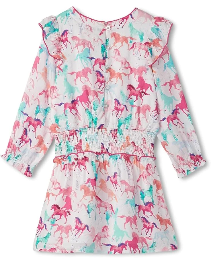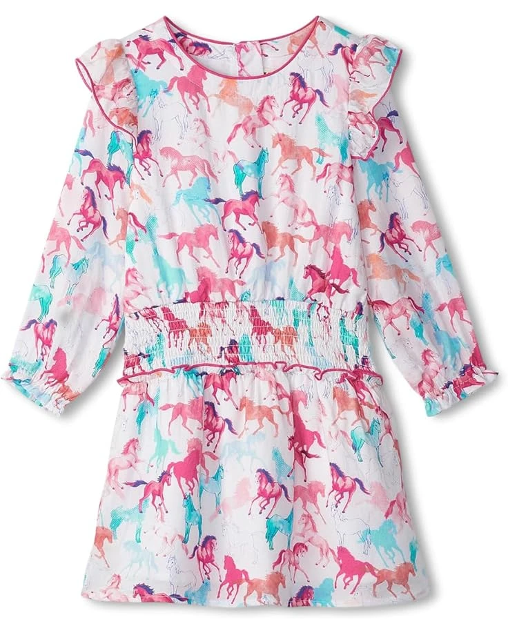 - The fairy tale Hatley® Kids Photo Print Horses Smocked Waist Dress features enchanting details for your little dreamer. Say goodbye to morning wardrobe dilemmas thanks to this drop waist tulle dress! Featuring a round neckline and a skirt with two layers of whimsical tulle, they’ll want to wear this one over and over (and over again). This crew neck, half sleeve dress features rib detailing and rolled edge at neckline and sleeves. This dress has tulle skirt with dropped waist and hits below the knee.