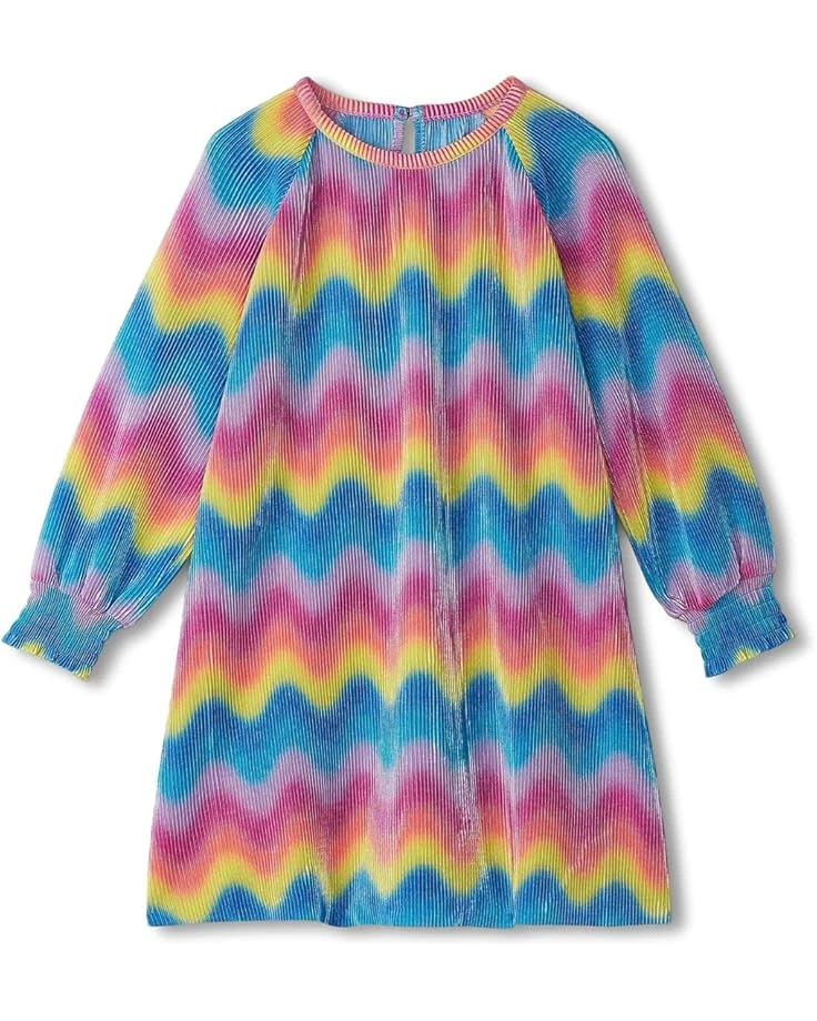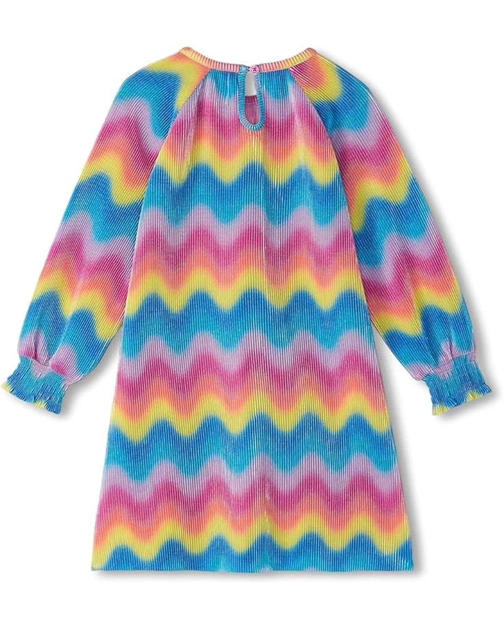 - Brighten her day in the lively Hatley® Kids Rainbow Wave Pleated A-line Dress. This dress features a crew neckline with a center-back keyhole opening with button-closure, long raglan sleeves, dropped waist, smocked cuffs, and allover print.