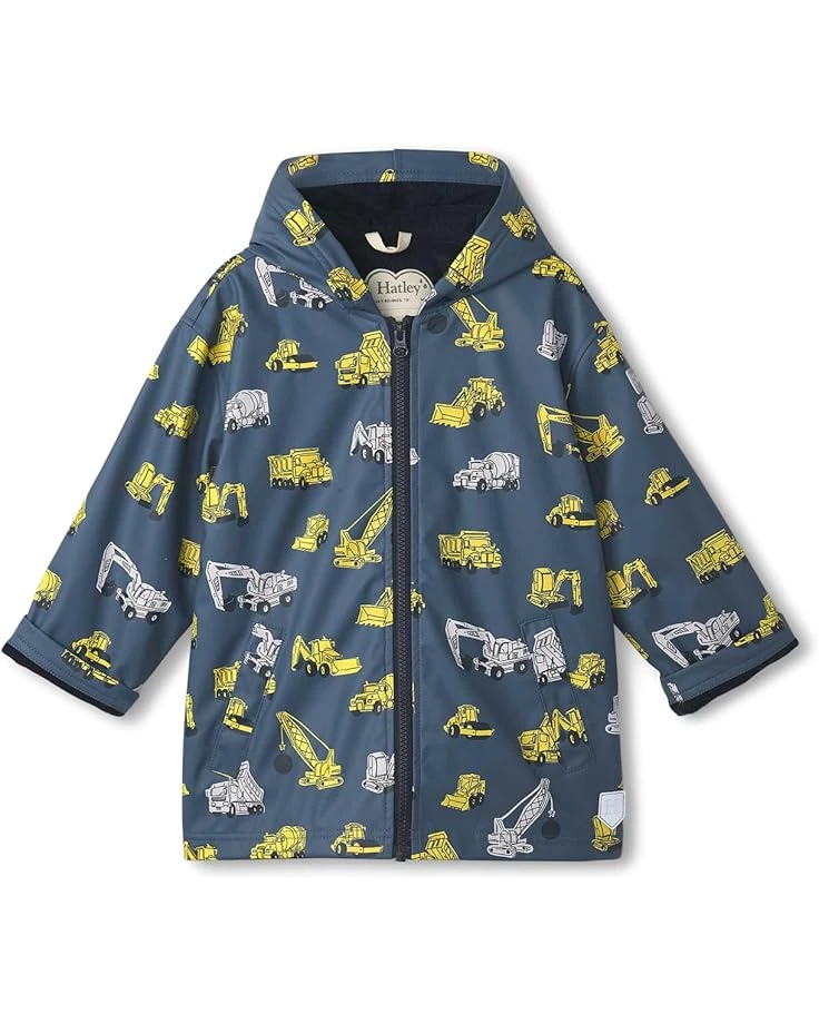 - Splash into style with Hatley®! Keep your little one snug and dry in the Hatley Kids Zip Up Rain Jacket, featuring a playful printed design that’s as fun as it is functional. With a zippered front closure, long sleeves, and an attached hood, this jacket offers full coverage against drizzles and downpours. Handy pockets are perfect for stashing treasures or keeping little hands warm. Crafted with quality and comfort in mind, this rain jacket is lightweight yet durable, making it ideal for rainy-day adventures.